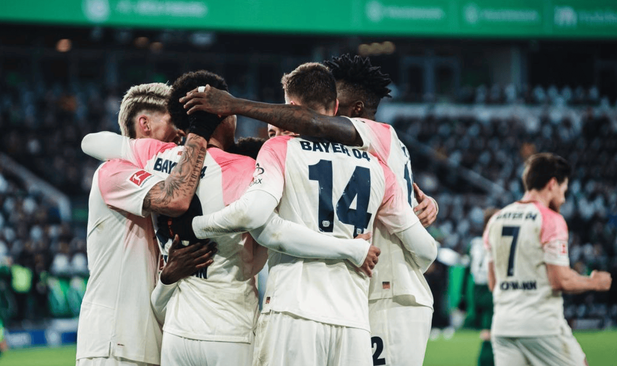 勒沃库森排出了3421阵型,希克担任最前端的锋线核心。马里克-蒂尔曼和霍夫曼负责进攻支援。格里马尔多、阿莱士-加西亚、马扎和波库组成了四名中场球员。塔普索巴、巴代和安德里希三名后卫搭档,弗莱肯则担任首发门将。勒沃库森的首发阵容总身价为2.15亿欧元,而沃尔夫斯堡的首发阵容总身价为1.14亿欧元。比赛一开始,勒沃库森便展现出强大的进攻火力。仅仅9分钟,霍夫曼就在禁区内接到传中球后,低射远角破门,攻入了比赛的首粒进球。这一脚射门角度刁钻,门将毫无反应。随后6分钟,沃尔夫斯堡的马耶尔尝试远射,但被勒沃库森门将扑出。第24分钟,勒沃库森再度破门,阿莱士-加西亚从右侧起球传中,塔普索巴抢点头球攻门,皮球弹地后飞入球门远角,2:0。第33分钟,勒沃库森再下一城,希克送出精准直塞,马里克-蒂尔曼插上带球狂奔,在单刀位置低射得手,3:0!此时勒沃库森的进攻已完全压制住了沃尔夫斯堡。第40分钟,沃尔夫斯堡的阿穆拉因犯规吃到黄牌。上半场结束,勒沃库森以3:0领先沃尔夫斯堡,半场控球率达到64%。勒沃库森的三次射门都成功破门,而沃尔夫斯堡8次射门却始终未能进球。